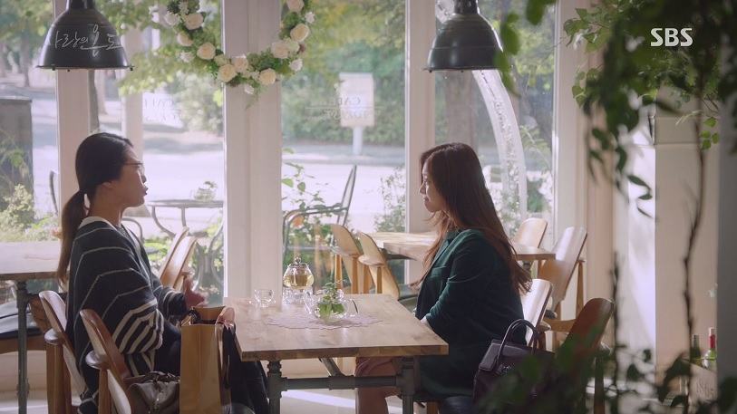 카페에서 지홍아와 박은정 작가가 이야기하는 장면