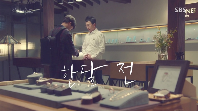온정선이 보석상에게 자신이 디자인한 반지 그림을 보여주는 장면