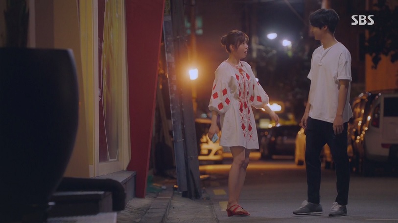 이현수와 온정선이 밤에 동네 골목길을 걷는 장면