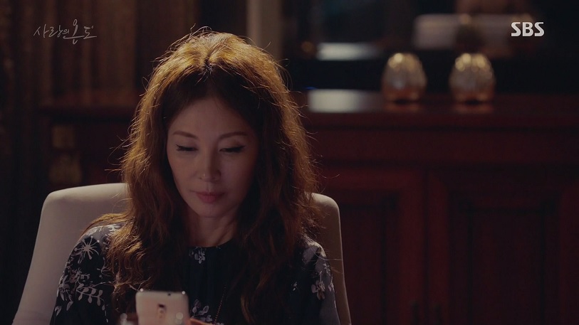 호텔에서 술을 마시며, 온정선의 아빠에게 전화를 거는 유영미