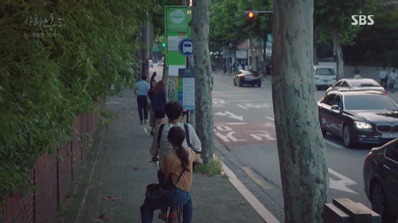 이현수와 온정선이 버스정류장까지 자전거를 함께 타고 가는 장면